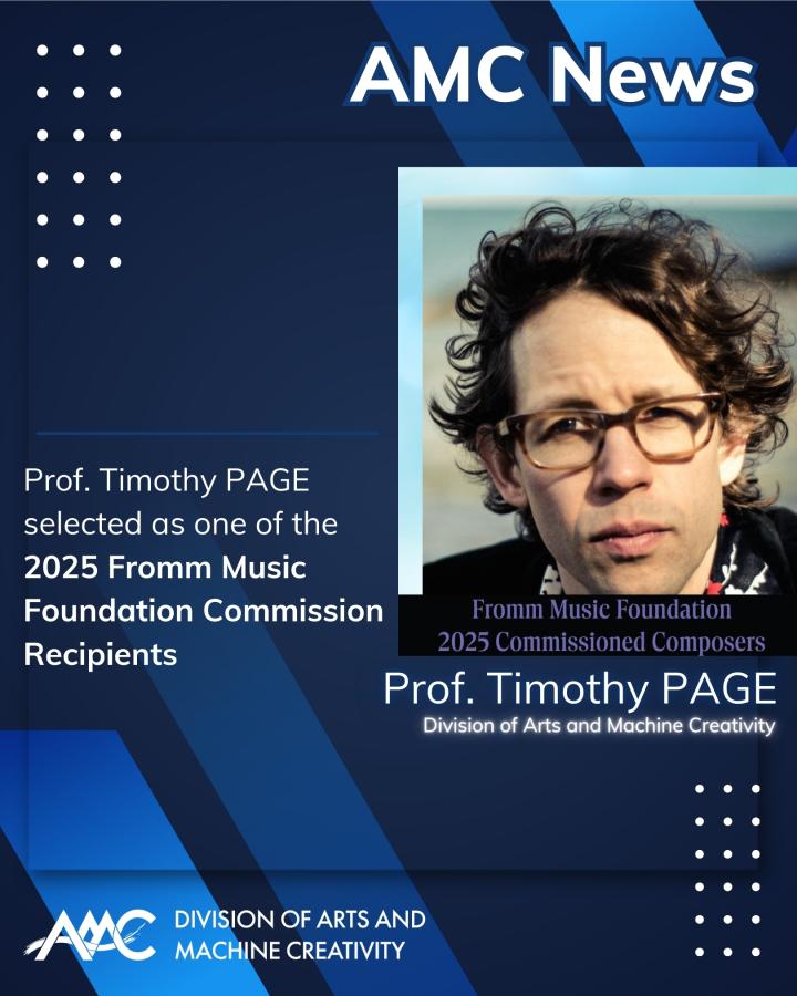 The Division of Arts and Machine Creativity (AMC) is delighted to share the exciting news that Timothy PAGE, composer, musician, performance artist and Assistant Professor at AMC, has been selected as one of the recipients of the prestigious Fromm Music Foundation Commission at Harvard University for the year of 2025.