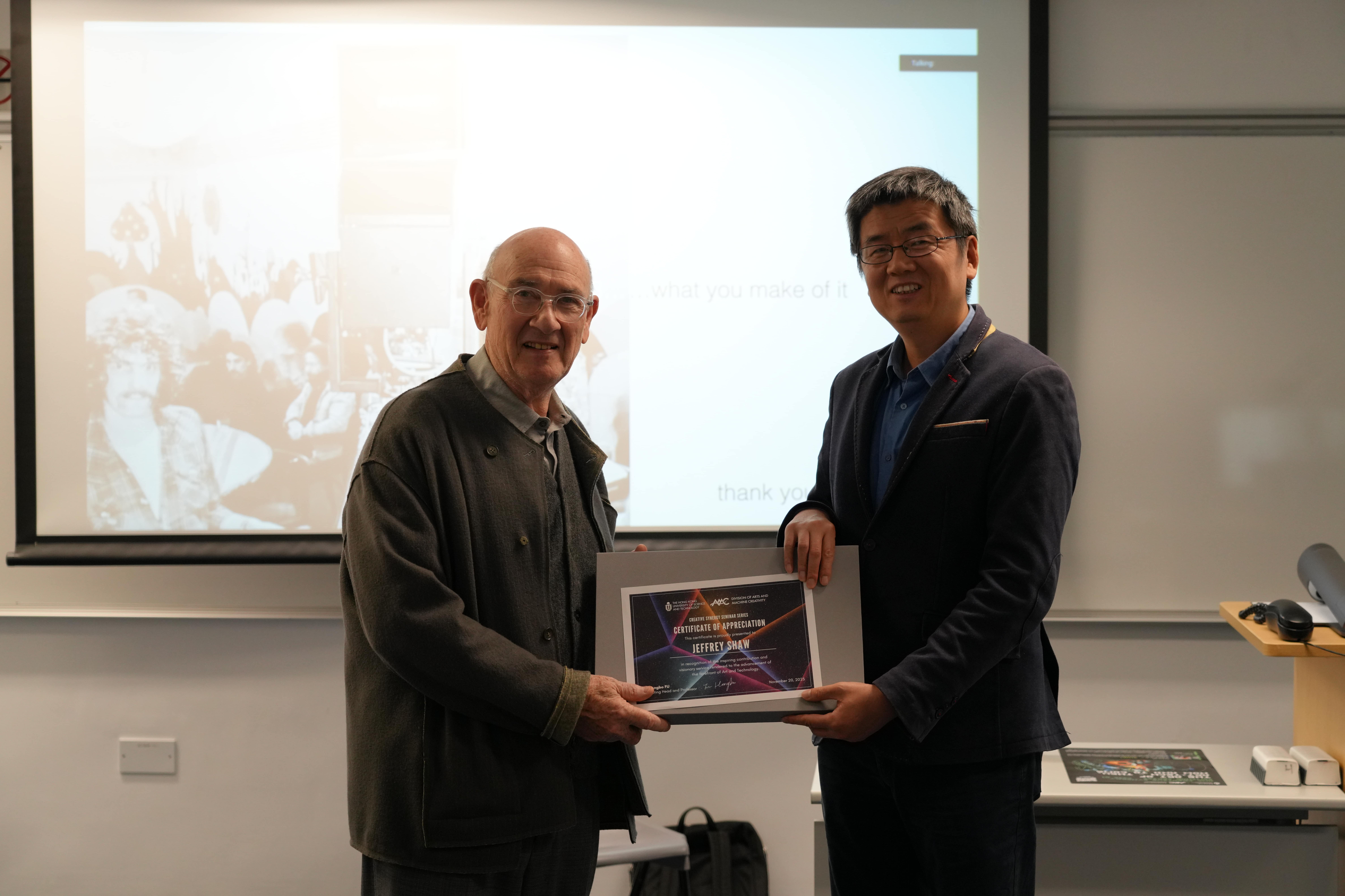 ✨ The AMC Creative Synergy Seminar Series kicked off on Nov 20, 2025 with the inspiring session “The Art of art+tech – then, now and to come”, delivered by Prof. Jeffrey SHAW, Chair Professor at the Academy of Visual Arts, HKBU and a pioneering figure in new media art 🎨🤖.