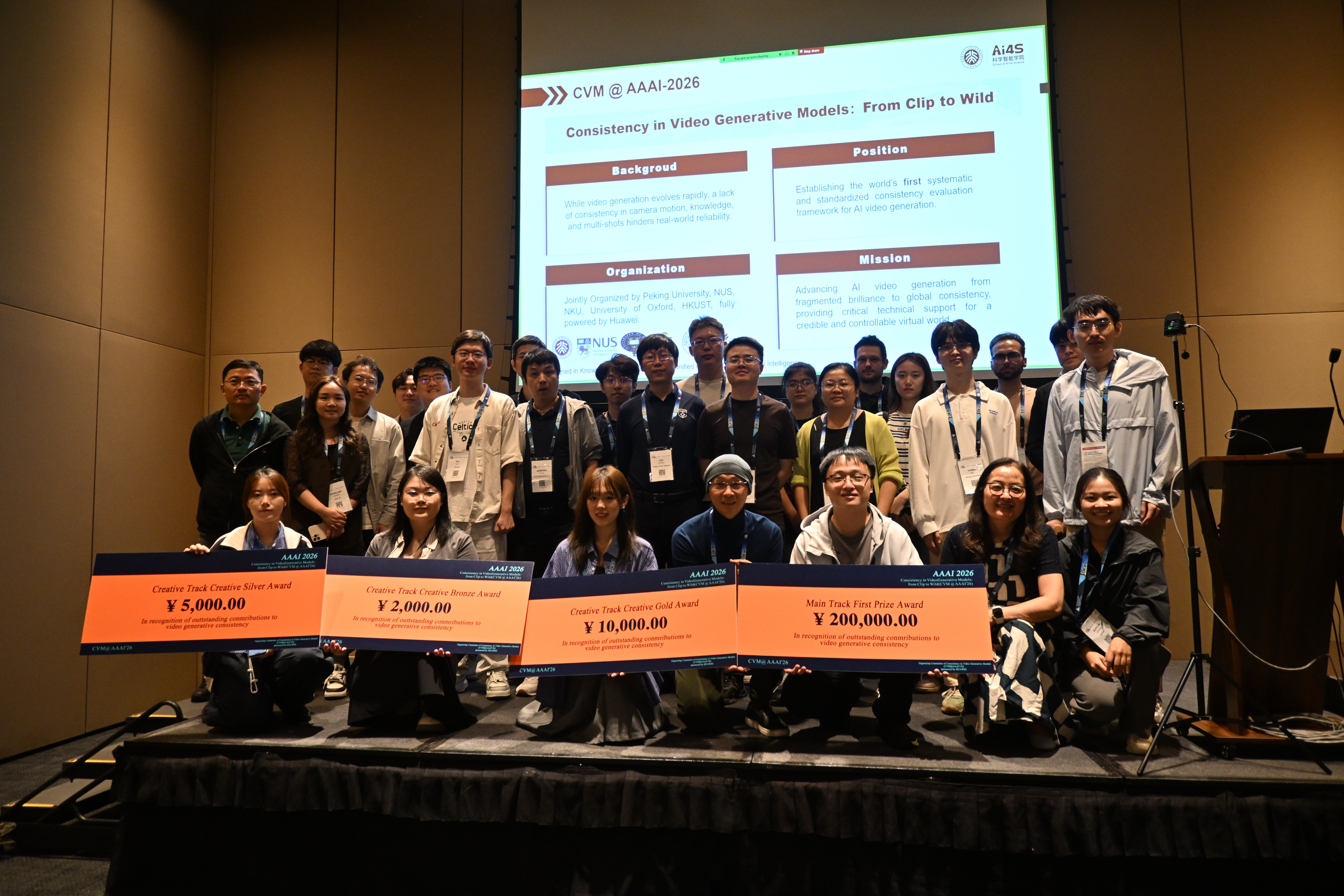 The prestigious AAAI 2026 Conference was recently convened at Singapore from January 20 - 27, 2026. At one of its notable workshop titled "Consistency in Video Generative Models: from Clip to Wild (CVM)", the generative AI short film The Meeting, created by MA student Shiqin HOU from the Division of Arts and Machine Creativity (AMC) at The Hong Kong University of Science and Technology (HKUST), stood out among the entries and was awarded Creative Gold Award in the Creativity Track. This achievement not only highlights AMC students' exceptional creativity but also serves as an exemplary case of AMC's dedication to the deep integration of art and cutting-edge technology.